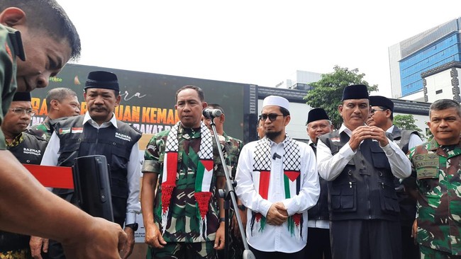 Penyerahan kemanusiaan untuk Palestina itu diserahkan ke Baznas di lapangan Mabes AD, Jalan Medan Merdeka Barat, Jakarta. Dia menjelaskan bantuan yang diberikan di antaranya makanan, minuman, pakaian dan selimut dan kebutuhan untuk orang tua, anak-anak, sampai bayi.