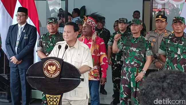 Sebelumnya, Prabowo Subianto meresmikan Rumah Sakit Tingkat IV Timika, Papua. Rumah sakit tingkat 4 itu milik TNI, tapi tetap bisa digunakan untuk masyarakat umum.