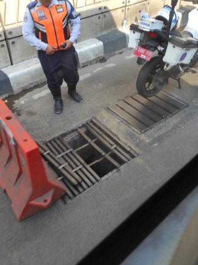 Pantauan detikcom, Senin (13/11) pagi, penutup got tersebut berada di sisi kiri underpass Mampang arah Kuningan. Terlihat beberapa batang besi penutup got terlepas.