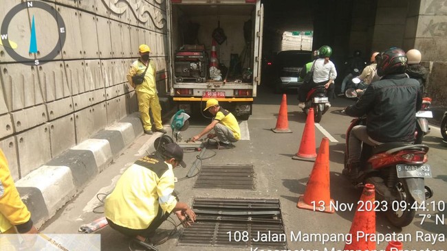 Dinas Bina Marga DKI Jakarta berencana mengganti besi penutup saluran air Underpass Mampang, Jakarta Selatan, dengan beton. Hal itu disebabkan beberapa waktu lalu, besi penutup gorong-gorong itu hilang.