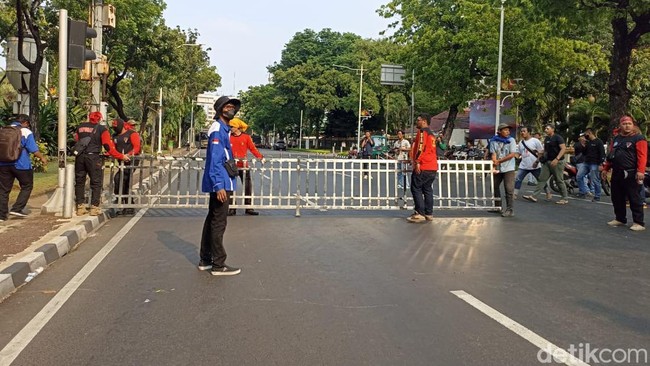 Saat ini Jalan Medan Merdeka Selatan dari arah Tugu Tani ke Patung Kuda telah ditutup. Kendaraan tak bisa melintas. Personel kepolisian hingga Satpol PP bersiaga di belakang pagar Balai Kota.