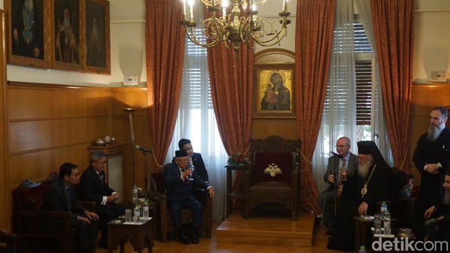 "Jadi saya mengajak itu karena di Yunani juga hampir sama modelnya, ada berbagai agama dan beliau sangat concern menjaga membangun kasih sayang di antara manusia. Dan saya ingin mendorong supaya peran tokoh agama lebih dikuatkan lagi dalam ikut membangun perdamaian di berbagai wilayah yang masih konflik," ujar Ma'ruf.
