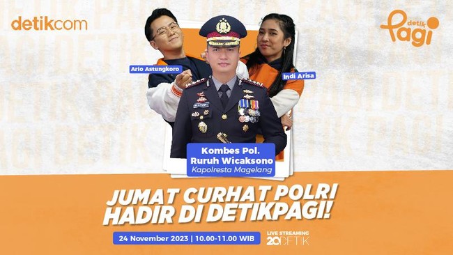 Jumat Curhat detikPagi hadir lagi. Pagi ini giliran Kapolresta Magelang Polda Jawa Tengah Kombes Ruruh Wicaksono yang akan menyapa masyarakat.