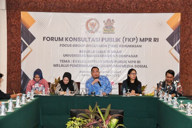 Hal tersebut disampaikan Indro Gutomo, saat menjadi narasumber kegiatan FKP dalam bentuk FGD Kehumasan MPR RI, bertema 'Evaluasi Pelayanan Publik MPR RI Melalui Penerimaan Delegasi dan Media Sosial', kerja sama MPR dengan Universitas Mahasaraswati (Unmas) Denpasar, di Kabupaten Badung, Bali, Kamis (23/11).