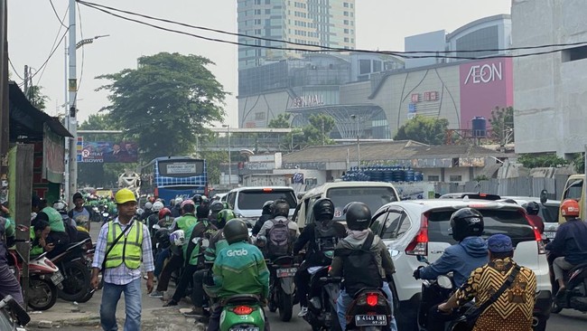 Pantauan detikcom di lokasi, Jumat (24/11/2023), pukul 08.43 WIB kemacetan terjadi menjelang jembatan penyeberangan orang (JPO) di depan Stasiun Tanjung Barat.