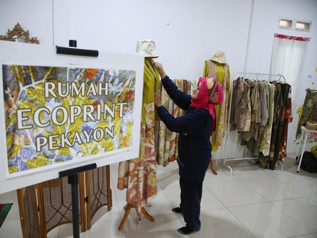 "Kita memproduksi ecoprint itu dari daun-daun di sekitar kita. Kita memperbanyak tanamannya juga, jadi nggak boleh beli atau ambil (tanaman) dari luar. Nggak boleh beli tanaman, daun-daun dari luar, semua kita tanam sendiri," sambungnya.