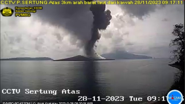 Aktivitas vulkanik di Gunung Anak Krakatau masih berlanjut hari ini. Gunung Anak Krakatau mengalami empat kali erupsi.