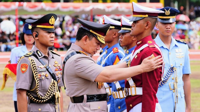 "Terakhir, saya berpesan agar para taruna terus mempererat sinergisitas dan soliditas TNI-Polri dalam setiap kesempatan. Dengan sinergisitas dan soliditas TNI-Polri yang kokoh, maka kita akan mampu melewati berbagai tantangan bangsa demi mewujudkan visi Indonesia Emas 2045," ujar Sigit.