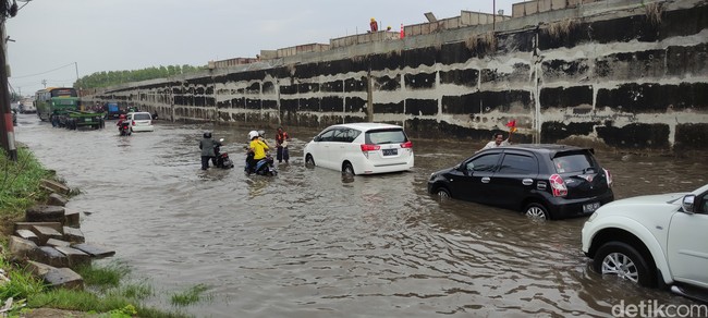 "Untuk genangan yang paling dalam saat ini di tikungan Kubro. Terboyo tergenang sedikit tapi masih bisa dilewati," kata Kompol Ris Andrian Yudo Nugroho yang turun langsung mengatur lalu lintas.