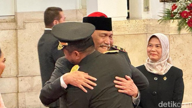 Menko Marves Luhut Binsar Pandjaitan hadir dalam pelantikan Jenderal Maruli Simanjuntak sebagai Kepala Staf Angkatan Darat (KSAD). Luhut sempat memeluk erat menantunya tersebut usai prosesi pelantikan.