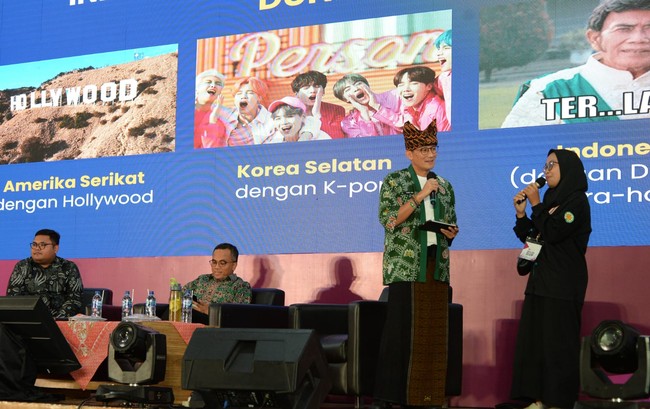 Sandi menjelaskan di tengah perjalanan Indonesia menuju bonus demografi, para pemuda termasuk mahasiswa memiliki peran penting dalam pembangunan ekonomi Indonesia, khususnya bidang ekonomi kreatif.
