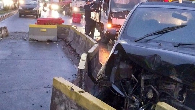 Dari postingan foto yang diunggah akun TMC, terlihat mobil berkelir hitam itu menabrak separator busway hingga bagian depannya hancur.