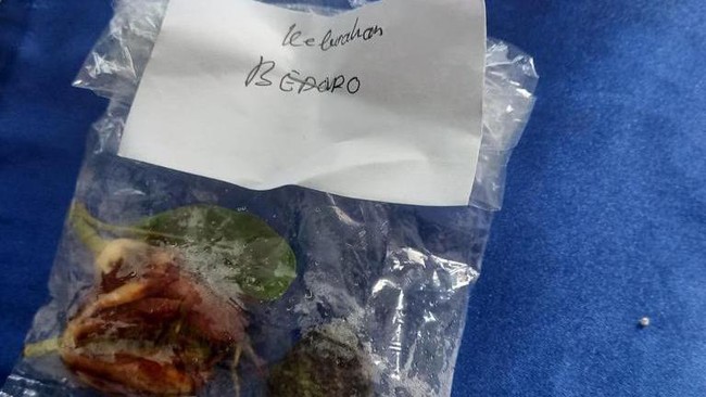 Dari foto yang diterima detikJateng, Rabu (29/11), pada bungkusan berupa plastik bening itu terdapat tulisan nama-nama kantor desa yang dituju. Plastik itu berisi bunga kantil, bunga warna putih, beras kuning, telur, dan menyan hio.