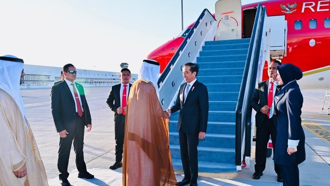 Presiden Joko Widodo (Jokowi) dan delegasi terbatas dari RI telah tiba di Dubai usai menempuh 10 jam penerbangan. Dalam kunjungan ke Dubai ini, Jokowi akan menghadiri World Climate Action Summit (WCAS) COP28.