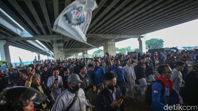 Tak hanya itu, massa buruh juga memblokade Jalan Ahmad Yani, Kota Bekasi. Inilah yang kemudian menimbulkan kemacetan di Exit Tol Bekasi Barat.
