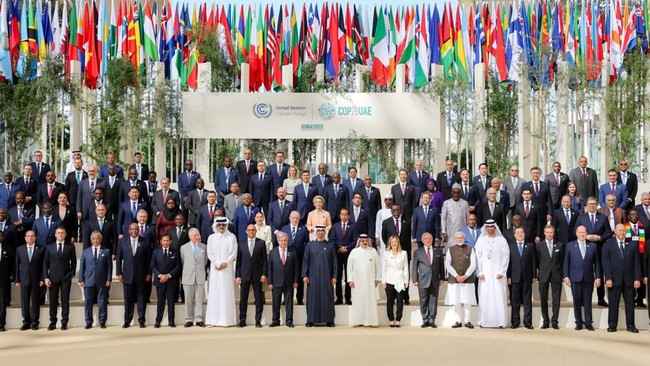 Presiden Joko Widodo (Jokowi) menghadiri Konferensi Tingkat Tinggi (KTT) Perubahan Iklim COP28. Jokowi mengikuti sesi family photo bersama para pemimpin negara lainnya.