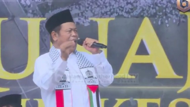 "Yang pertama, saya akan mengucapkan terima kasih atas bantuan Saudara-saudara, Bapak-bapak, Ibu-ibu, kaum muslimin Indonesia yang disampaikan melalui Majelis Ulama Indonesia (MUI) dan telah kita salurkan melalui Baznas lebih dari Rp 25 miliar. Allahuakbar! Dan hari ini terus dan terus terkumpul, terus terkumpul, terus terkumpul. Mudah-mudahan Palestina merdeka, Palestina merdeka!" ucap Marsudi dalam sambutannya di aksi Munajat Kubro 212 di Monas, Sabtu (2/12/2023).