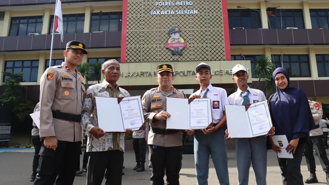 Polres Metro Jakarta Selatan menggelar upacara khusus untuk memberikan penghargaan kepada kedua pelajar tersebut di Mapolres Metro Jakarta Selatan, Selasa (5/12/2023) pagi ini. Kapolres Metro Jakarta Selatan Kombes Ade Ary Syam Indradi menyerahkan secara langsung penghargaan tersebut kepada kedua pelajar.