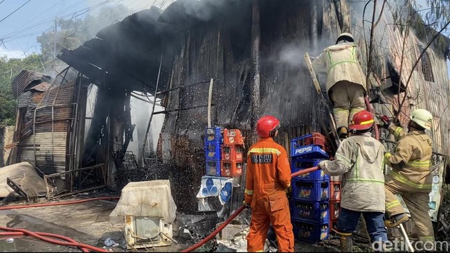 Pantauan detikcom di lokasi, Selasa (5/12), terlihat belasan petugas kebakaran tengah memadamkan api. Tampak titik api masih muncul di lapak tersebut.