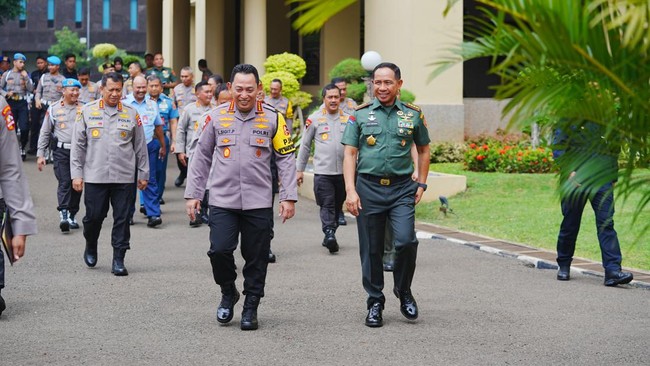 Panglima TNI Jenderal Agus Subiyanto menyambangi Mabes Polri untuk bertemu langsung dengan Kapolri Jenderal Listyo Sigit Prabowo. Pertemuan itu membahas banyak hal, mulai pengamanan Pemilu 2024 hingga situasi Papua.