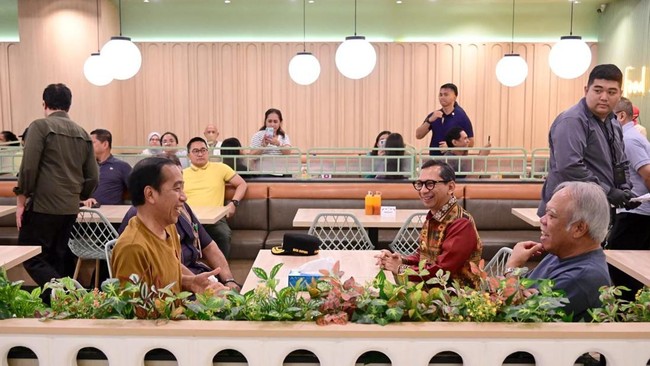 Tiba di restoran, tampak Jokowi duduk bersebelahan dengan Pj Walikota Kupang Fahrensy P. Funay, dan berhadapan dengan Menteri Basuki, serta Pj Gubernur NTT Ayodhia Kalake di meja yang sama sambil menyantap sejumlah makanan yang telah tersedia di meja.
