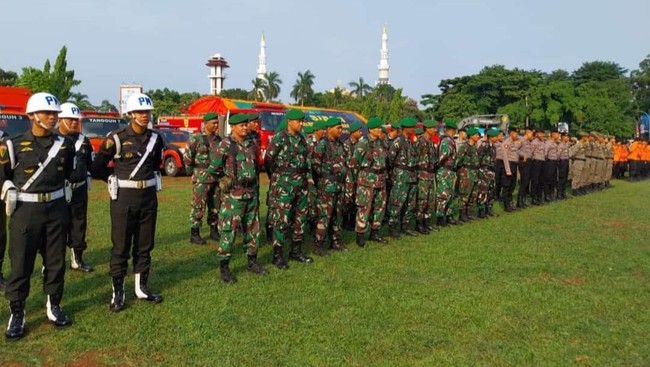 Pemerintah Kabupaten (Pemkab) Bogor bersama jajaran TNI-Polri menggelar apel siaga bencana di Lapangan Tegar Beriman, Cibinong. Apel ditujukan agar petugas bersiaga karena musim hujan telah dimulai.