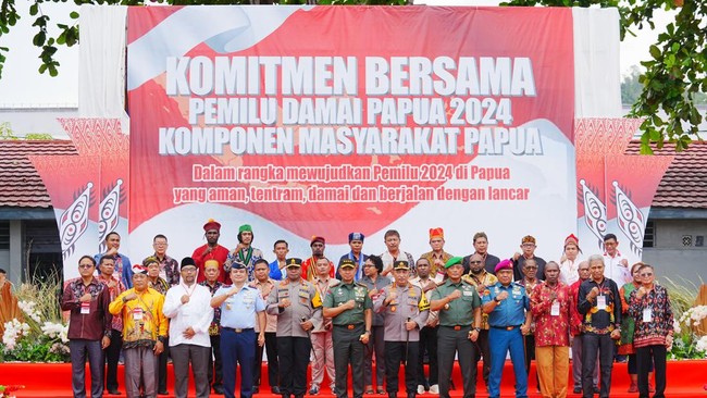 "Baru saja kita melaksanakan Deklarasi Damai Pemilu 2024, yang dilaksanakan oleh saya, Kapolri, dan seluruh elemen masyarakat di Papua. Kita berharap pelaksanaan pemilu bisa berjalan lancar. Kita akan bantu dari distribusi sampai pengamanan di TPS. Tentunya nanti kita berkolaborasi dengan Polri, Bawaslu daerah, KPU yang ada di wilayah," kata Agus.