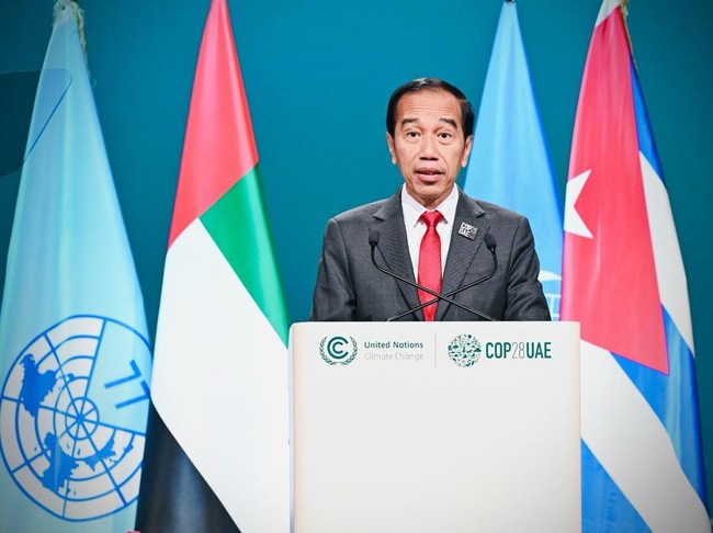 Hal tersebut disampaikan Jokowi pada gelaran Konferensi Tingkat Tinggi (KTT) Iklim Conference of the Parties (COP 28) yang berlangsung di Dubai Expo pada 30 November - 12 Desember 2023. Acara ini merupakan bagian dari inisiatif Perserikatan Bangsa-Bangsa (PBB) yang menitikberatkan pada isu perubahan iklim global.