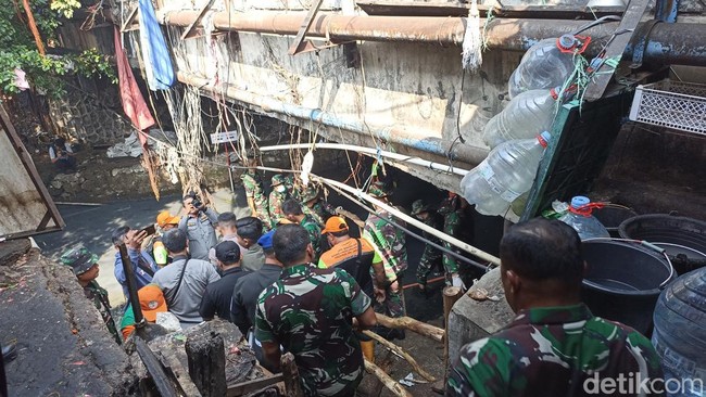 TNI bersama Pemprov DKI menggelar kegiatan bersih-bersih area anak Kali Krukut Tanah Abang di Jakarta Pusat. Kegiatan dihadiri oleh Kepala Staf Angkatan Darat (KSAD) Jenderal TNI Maruli Simanjuntak hingga Penjabat (Pj) Gubernur DKI Jakarta Heru Budi Hartono.