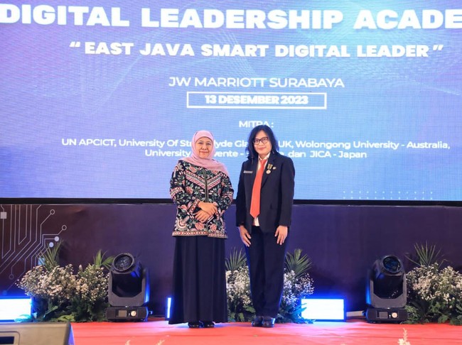 Sebagai informasi, dalam penutupan pelatihan ini, Khofifah menyematkan lencana Smart Digital Leader kepada para peserta pelatihan, yang merupakan Pejabat Pimpinan Tinggi Pratama (Eselon II) dan Pejabat Fungsional Analis Kebijakan Ahli Utama di Lingkup Pemerintah Provinsi (Pemprov) Jatim. Pelatihan ini merupakan kerja sama antara Badan Pengembangan Sumber Daya Manusia (BPSDM) Pemprov Jatim dan Kementerian Kominfo RI. Para peserta mendapatkan materi dari universitas terkemuka dunia seperti University of Strathclyde Glasgow UK, University of Wollongong Australia, University of Twente Belanda, dan JICA Jepang.