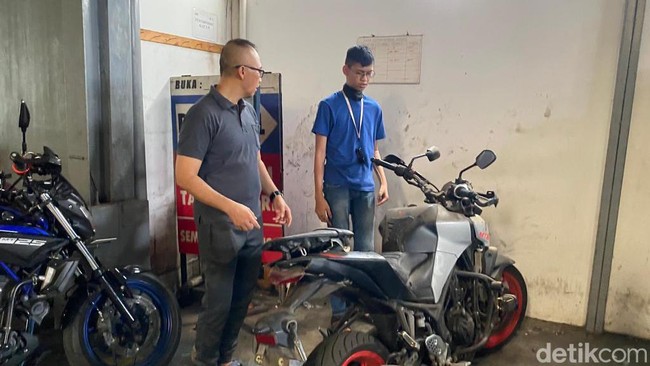 Sultan Rif'at Alfatih siang ini mendatangi sebuah bengkel motor di kawasan Bintaro, Jakarta Selatan. Dia datang untuk melihat motornya setelah mengalami kecelakaan terkena jeratan kabel menjuntai.