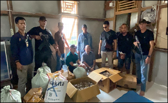 Lebih lanjut Davin menjelaskan penangkapan kedua tersangka itu diawali atas laporan masyarakat terkait adanya aktivitas penyimpanan dan rencana perdagangan sisik trenggiling. Dari laporan tersebut kemudian petugas bergerak cepat melakukan profiling dan pencarian lokasi transaksi. Hasilnya tim berhasil menangkap kedua tersangka di sebuah rumah yang di dalamnya terdapat barang bukti sisik trenggiling sebanyak 337, 88 kg yang sudah dikemas dalam 6 karung dan 13 dus.