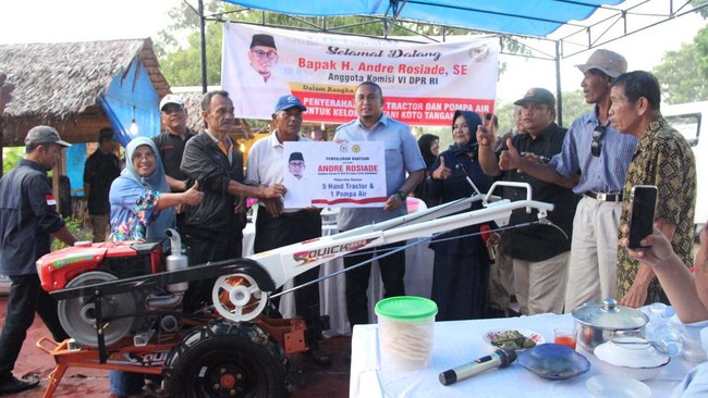 Anggota DPR RI asal Sumatera Barat (Sumbar), Andre Rosiade menyerahkan bantuan berupa alat dan mesin pertanian (alsintan) kepada enam kelompok tani yang ada di Kota Padang, Sumbar. Berupa lima hand tractor (traktor tangan) dan pompa air.
