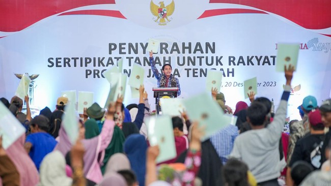 Selain itu, Raja Juli menyerahkan 20 sertifikat tanah wakaf di Wonosobo, Jawa Tengah, pada Selasa (19/12). Dia mengatakan sertifikat tanah berpotensi untuk menghindari terjadinya konflik.
