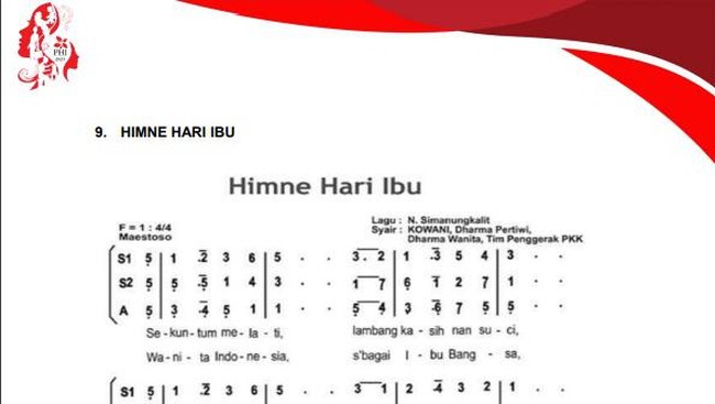 Hari Ibu 22 Desember 2023 adalah peringatan ke-95 tahun. Dikutip dari Panduan Peringatan Hari Ibu ke-95 Tahun 2023, berikut ini adalah lirik Hymne Hari Ibu.
