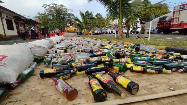Belny mengatakan ribuan botol miras tersebut dikumpulkan oleh polisi dari tiga bulan terakhir. Ia mengatakan miras tersebut didapat dari warung-warung jamu dan tempat hiburan malam yang tidak memiliki izin.