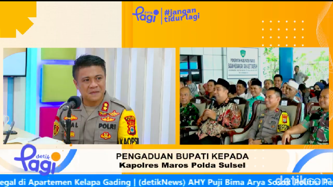 Bupati Maros, Sulawesi Selatan, Chaidir Syam, juga menyampaikan curhatannya dalam program Jumat Curhat detikPagi bersama Kapolres Maros AKBP Awaludin Amin. Chaidir mengapresiasi kinerja AKBP Awaludin hingga menitipkan soal pengamanan saat libur Natal dan tahun baru.