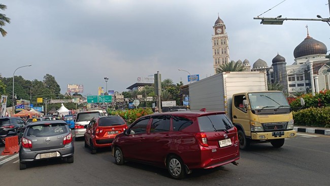 Volume kendaraan dari arah Ciawi maupun Tol Jagorawi terpantau cukup padat. Lalu lintas menuju Puncak terlihat tersendat, namun tetap masih mengalir.