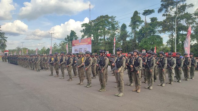 "Pagi ini saya mewakili Bapak Kapolri menyematkan PIN Emas Kapolri kepada personel Satgas Operasi Damai Cartenz baik TNI maupun Polri," ujar Wakapolda Papua Brigjen Petrus Patrige Rudolf Renwarin di Lapangan upacara Batalyon B Satbrimobda Papua, Timika, Kamis (28/12/2023).