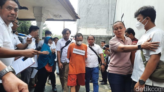 Rekonstruksi digelar di rumah kontrakan yang disewa Panca di Jalan Kebagusan Raya, RT 004 RW 03, Kelurahan Jagakarsa, Kecamatan Jagakarsa, Jakarta Selatan (Jaksel). Warga ramai mengerubungi area rumah kontrakan saat rekonstruksi digelar.