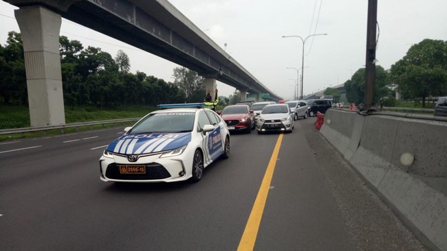 Polisi melakukan rekayasa lalu lintas di ruas Jalan Tol Jakarta-Cikampek pagi ini. Contraflow diberlakukan di titik Km 47 hingga Km 65 arah ke Cikampek.