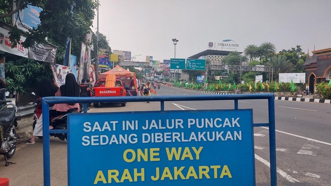 Rekayasa lalu lintas sistem satu arah (one way) di Jalan Raya Puncak, Kabupaten Bogor, Jawa Barat, diterapkan. One way diterapkan bagi kendaraan dari arah Puncak menuju Jakarta.