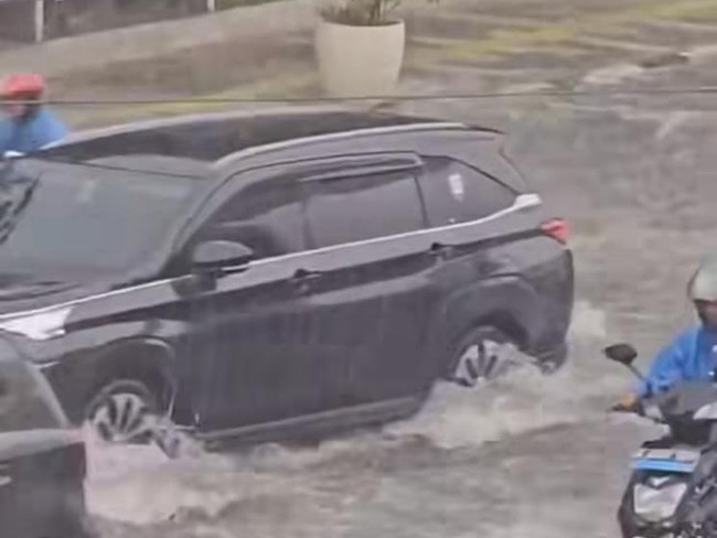 "Pak, ini tadi meluap. Kalau saya buka (tutup drainase), otomatis kan motor bisa jatuh, jadi saya tutup lagi," kata warga sambil menunjuk ke lubang drainase.