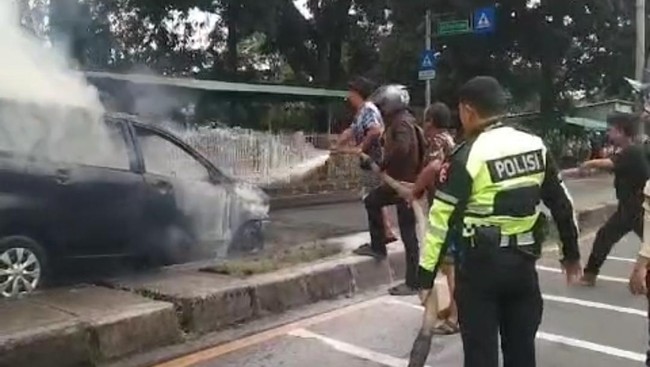Sebuah mobil Toyota Avanza bernopol B-2170-UZJ terbakar di Jalan Raya Jakarta-Bogor, Cibinong, Kabupaten Bogor, Jawa Barat. Polisi menjelaskan detik-detik kebakaran terjadi.