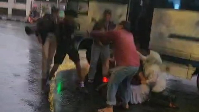 Dalam video viral terlihat sopir bus yang menggunakan kaus putih yang sudah telentang tampak diserang dua pria diduga pengamen. Di sisi sopir, tampak seorang wanita berjilbab berusaha melerai dan melindungi sopir dari pukulan dan tendangan.