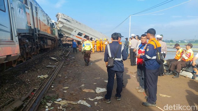 Petugas masih berusaha mengevakuasi di lokasi. Pemadaman listrik kereta dilakukan untuk mengevakuasi dua kereta tersebut.