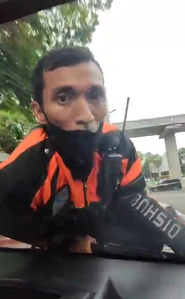 Petugas Dishub lalu memberhentikannya. Petugas, katanya, hendak menanyakan maksud pemobil yang bolak-balik sambil mengacungkan jari tengah itu.