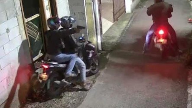 Dalam rekaman CCTV yang dilihat detikcom, tampak empat pria menggunakan motor berhenti di depan sebuah rumah warga. Dua orang tampak masuk melalui gerbang dan dua lainnya menunggu di motor.
