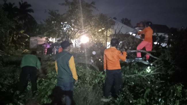Peristiwa itu terjadi pada Minggu (7/1) sekitar pukul 15.30 WIB. Petugas BPBD mencatat sebanyak 77 rumah warga yang rusak.