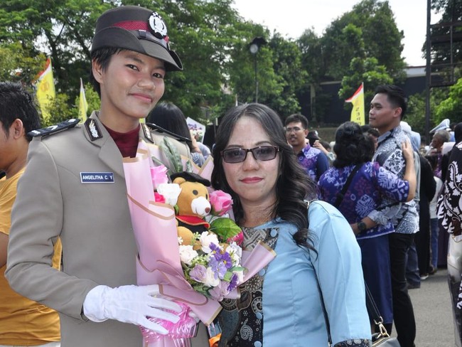 "Jadi atlet pencak silat pun karena mau jadi polisi. (Cita-cita jadi anggota Polri-red) jadi terinspirasi karena lihat opa berwibawa kalau pakai seragam," ucap Angel.